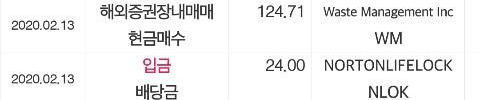2월 13일, 노턴 라이프록(티커: NLOK) 특별배당금이 지급되었습니다. 증권사별 노턴 라이프록의 특별배당금 지급날짜가 차이가 날 수 있습니다. '미국주식에 미치다' 유튜브에서 이항영 교수님께서 공부하는 차원에서 매수를 말씀하셨던 주식이었습니다.
