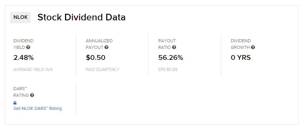NLOK는 배당금을 2019년 11월부터 지급하기 시작했고 배당률이 약 2.48%에 달합니다.