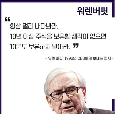 공짜 점심은 없다 - 폴 새뮤엘슨(미국 경제학자) 스스로 정보를 찾아 공부하고 연구하고 생각하는 투자자가 되길 바랍니다. 또한 항상 멀리 내다봐라. 10년이상 주식을 보유할 생각이 없다면 10분도 보유하지 마라 - 워렌 버핏